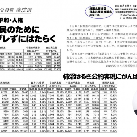 日本共産党埼玉北部地区委員会の統一地方選挙の結果は9人全員当選 熊谷...