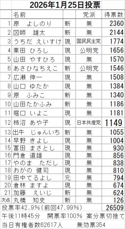 1月25日に投開票された本庄市議会議員選挙で日本共産党の柿沼あや子が当選、