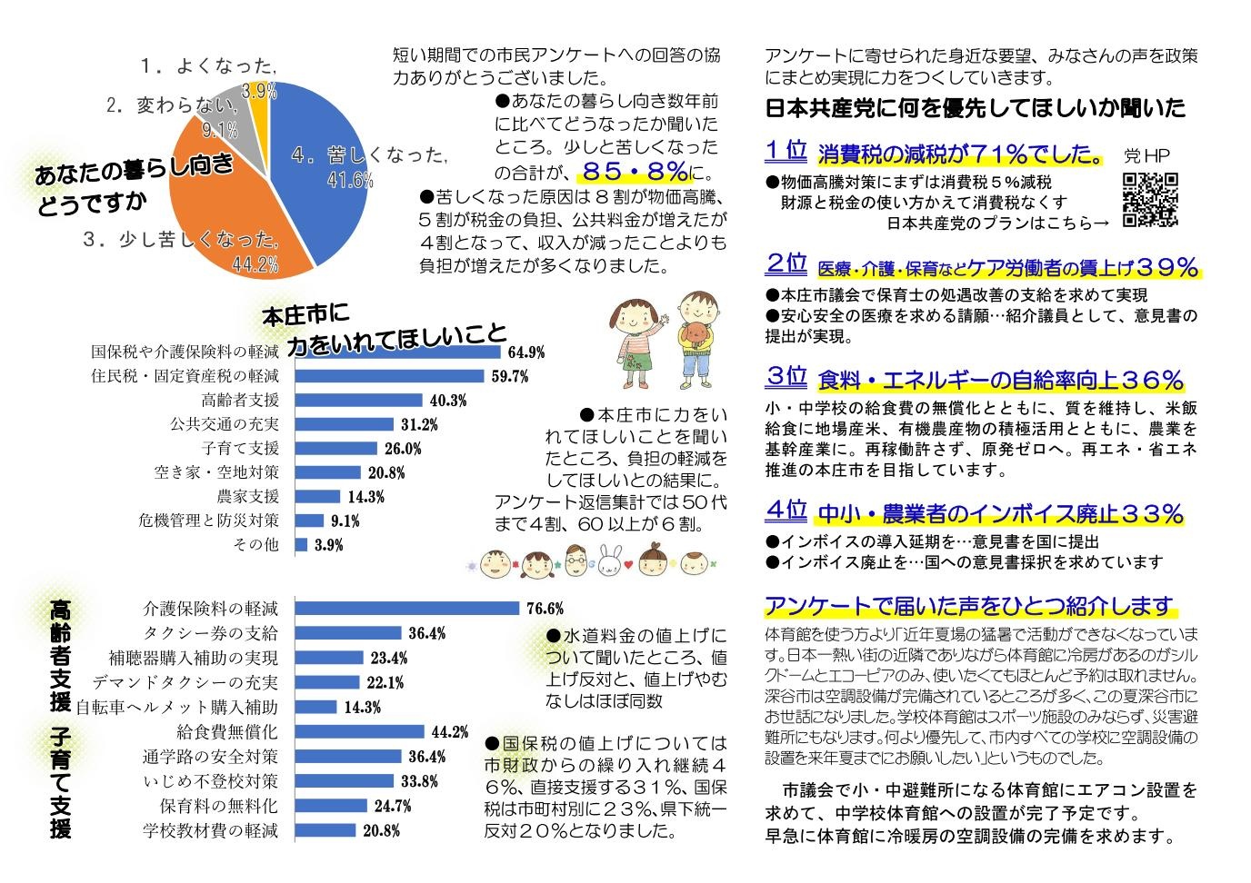 現在市民アンケートに取り組んでいます。web上でも回答できるようにしています。住み続けられる本庄市にするため、みなさんと一緒に考えていきたいと思います。ぜひみなさんの声をお寄せください。