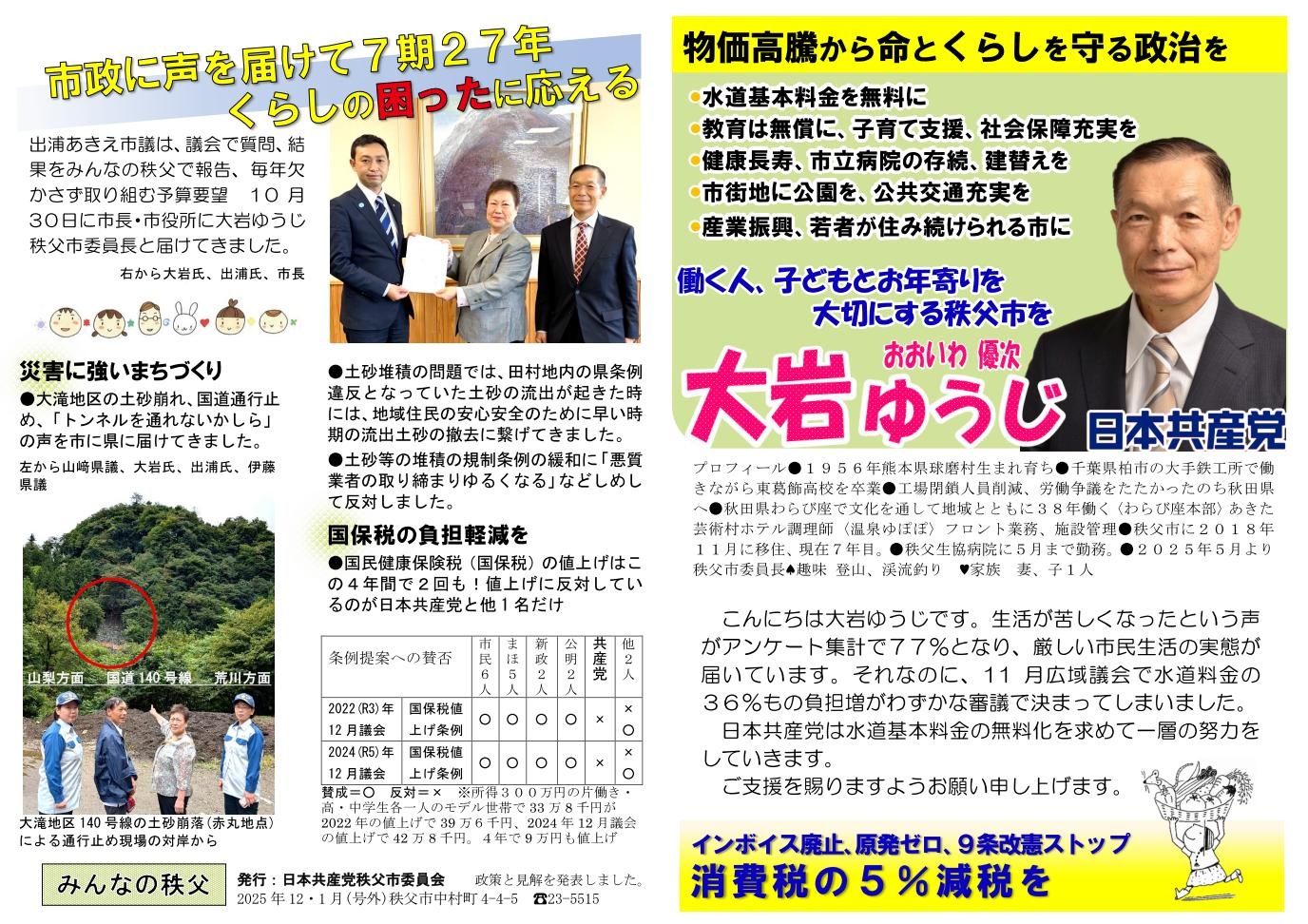 「物価が高くて、生活が大変厳しい」との声が次々と寄せられます。住民の命とくらしがおびやかされるなか国民健康保険税、水道料金の大幅値上げにストップをかけ、市民の負担がこれ以上増えないように皆さんの声を市政に届けるために懸命に働く決意です。