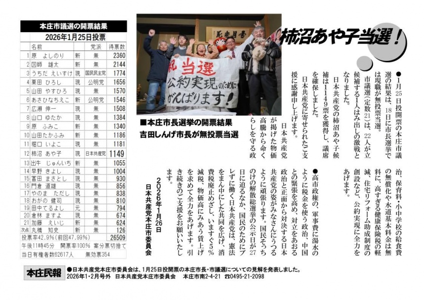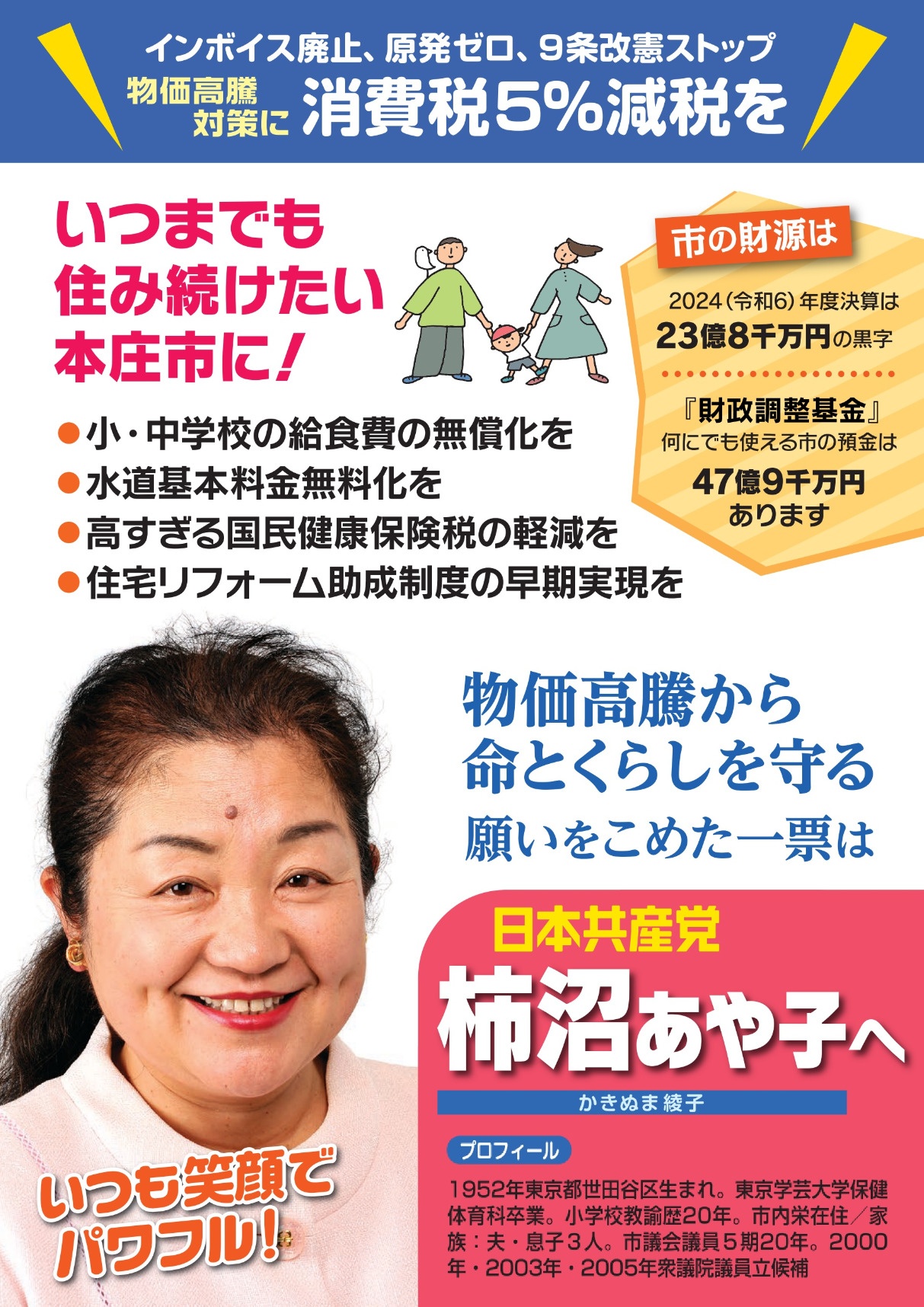 柿沼あや子(現)が本庄市議会議員選挙に立候補