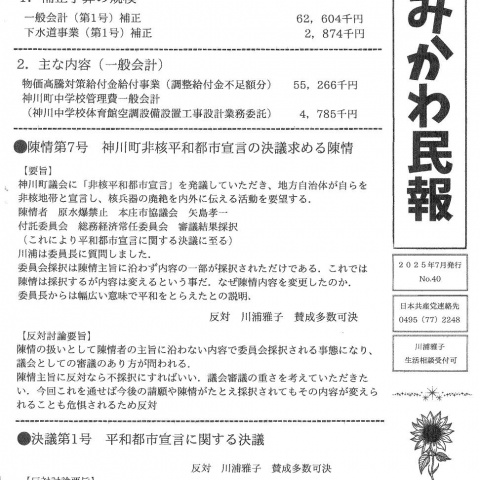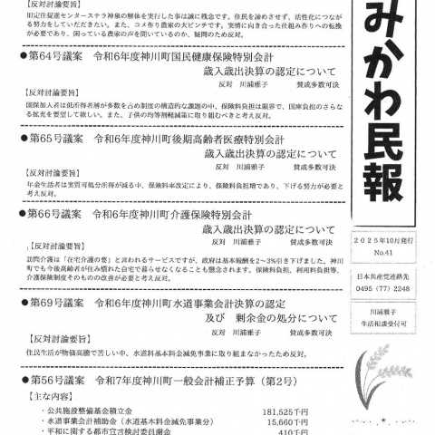 日本共産党が発行する「かみかわ民報」は、6月議会報告の特集をおこなっ...