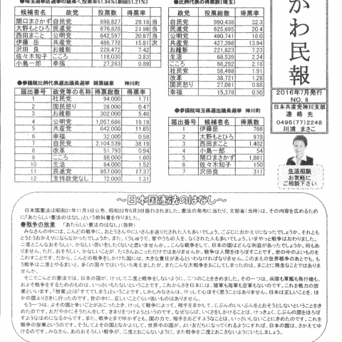 日本共産党神川支部が発行する「かみかわ民報」は、6月議会報告の特集...