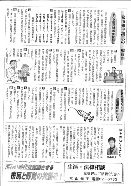 2023年12月皆野町民報 日本共産党皆野町委員会が発行する「みなの民報」第1955号は、「12月議会報告」「勤労福祉センターふれいあいぷーぷ・ホットの運営継続について」「国への改正マイナンバー法を見直し健康保険証の継続を求める意見書採択」常山知子の一般質問では「地域おこし協力隊員募集について」「危険な防火水槽対策について」「払える国民健康保険税に」を特集しています。ぜひご覧ください。 皆野町議会報告(1面、2面)