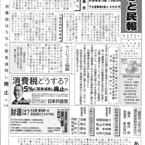 日本共産党が発行する「みさと民報」は、6月議会報告をおこなっています...