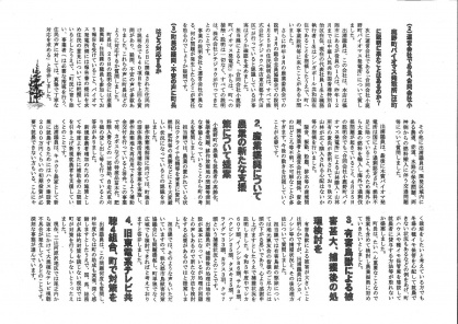 2024年6月小鹿野町議会報告 日本共産党小鹿野町委員会が発行する「おがの民報」は、6月定例議会報告で「県警、小鹿野警察署を廃止、秩父警察署に統合の意向」特集。出浦正夫議員の一般質問では「小鹿野町飯田地内に計画されているバイオマス発電所について」「農業の新たな支援策につい提案」「有害鳥獣による被害甚大、捕獲後の処理検討を」「旧東電系テレビ共聴組合、町で対策を」など紹介しています。 小鹿野町議会報告(1面、2面)