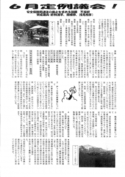 2016年6月横瀬町議会報告 日本共産党の浅見やすひこ横瀬町議会議員は、6月定例議会報告をおこなっています。今議会で浅見議員は「安全安心なまちづくりについて」「芦ヶ久保の振興策について」「職員の適正配置について」「若者遠距離通勤助成金の見直しについて」を取り上げました。ぜひご覧ください。 横瀬町議会報告