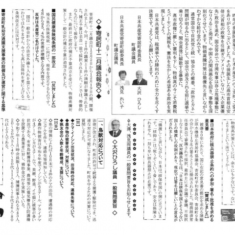 日本共産党寄居町委員会が発行する「寄居民報」は、12月議会報告の国民...