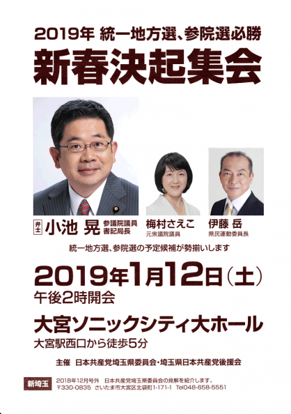 ▶︎統一地方選・参院選必勝 日本共産党 新春決起集会