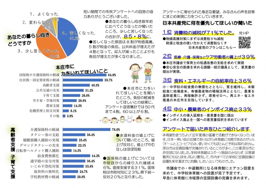 本庄市民アンケートでは生活が苦しくなったが85%に