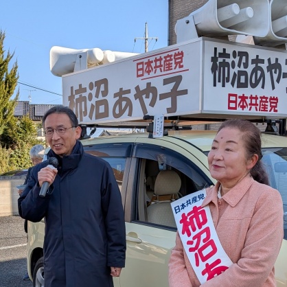 今、どこをお訪ねしてもきこえてくるのはくらしの悲鳴です。日本共産党がお願いした市民アンケートには86%もの方々が生活が苦しくなったと答えておられます。私柿沼綾子はこの声にまっすぐ答えて議会の中で、市民の皆さんにとって不利益な提案には対案も示してきっぱりと反対してまいります。私を議会に今度も送って働かせてください。まだまだやりたいことがたくさんあります。その仕事をやらせてください。全力で選挙戦をたたかいぬいてまいりますので支持の輪を広げてください。みなさんの大きなご支援で、再び市議会に送っていただきますようにお願いを申し上げます。